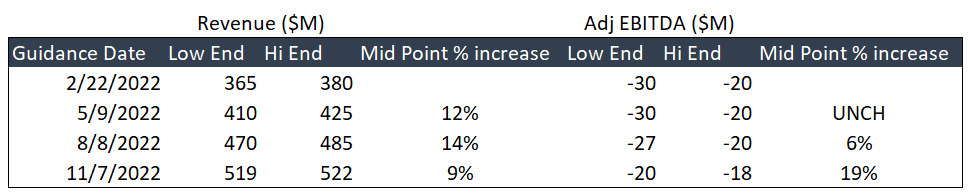 It is impressive to see their growth completely unaffected by recent macro trends, which was a point of repeated questions from Wall Street analysts on their most recent earnings call. The company is maintaining impressive growth and raising guidance as other consumer categories appear to be wavering. We believe that this is attributed to their unique subscription-based business model that solves a “high need” in a market (Health) and their competitors like Teladoc are not exactly aligned to pose direct competition. Management seems to see benefits of scale playing out going forward and predicts Adj. EBITDA profitability will continue going forward. They intend to show a full picture of their steps to operating profitability during the Q4 earnings call. We’ll be watching for continued subscriber growth and leverage gains in marketing spend.