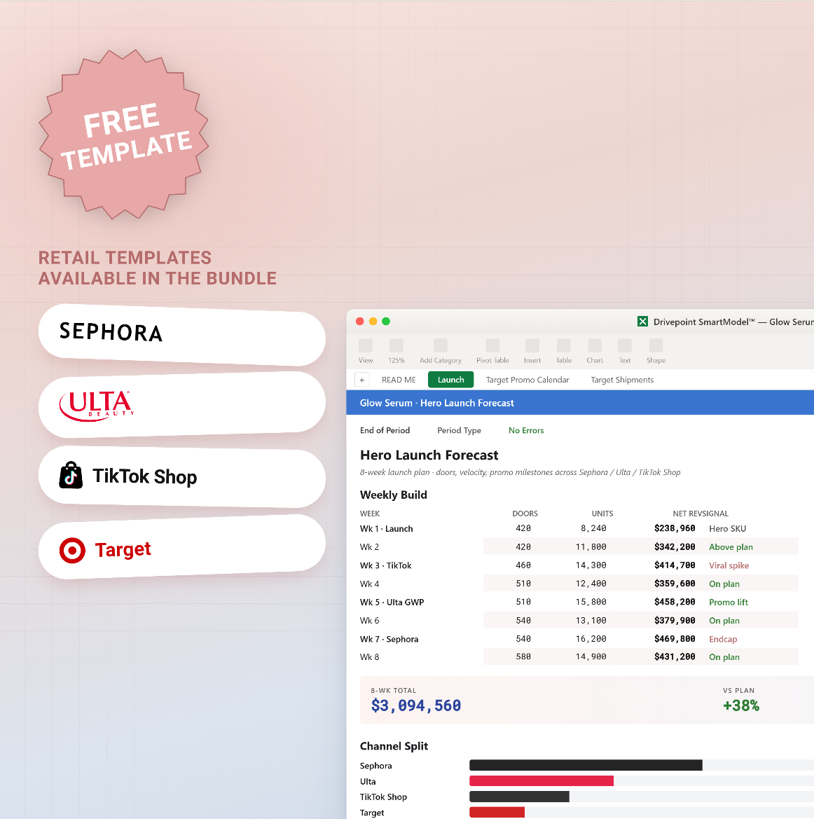 Download the templates top beauty brands are using to forecast Sephora, Ulta, TikTok Shop, and Target sales, velocity, units, shipments, trade spend and more.